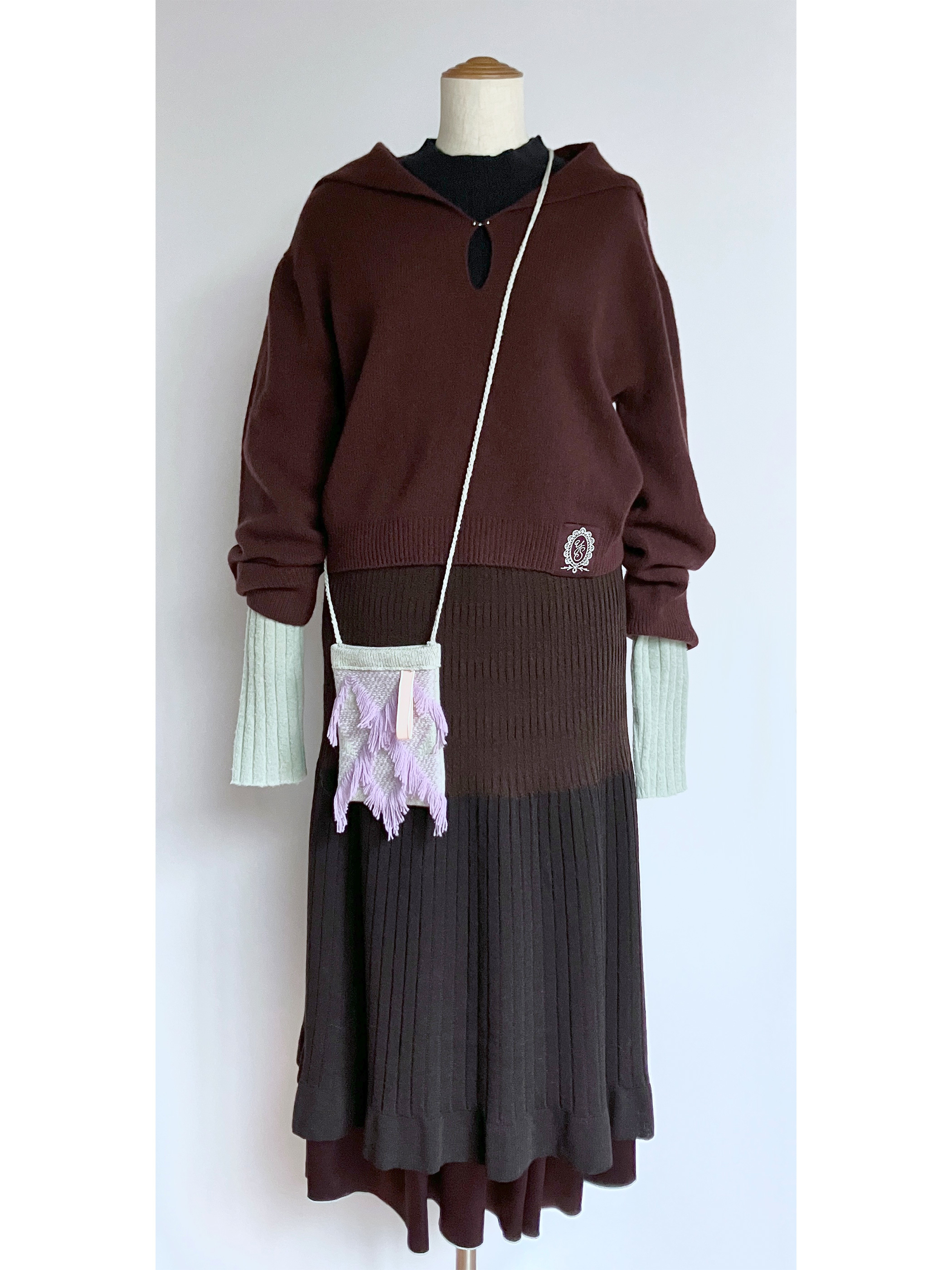 ボールの付いた留め具や、裾のボビンレース風刺繍のワンポイントで遊び心をプラスしました。