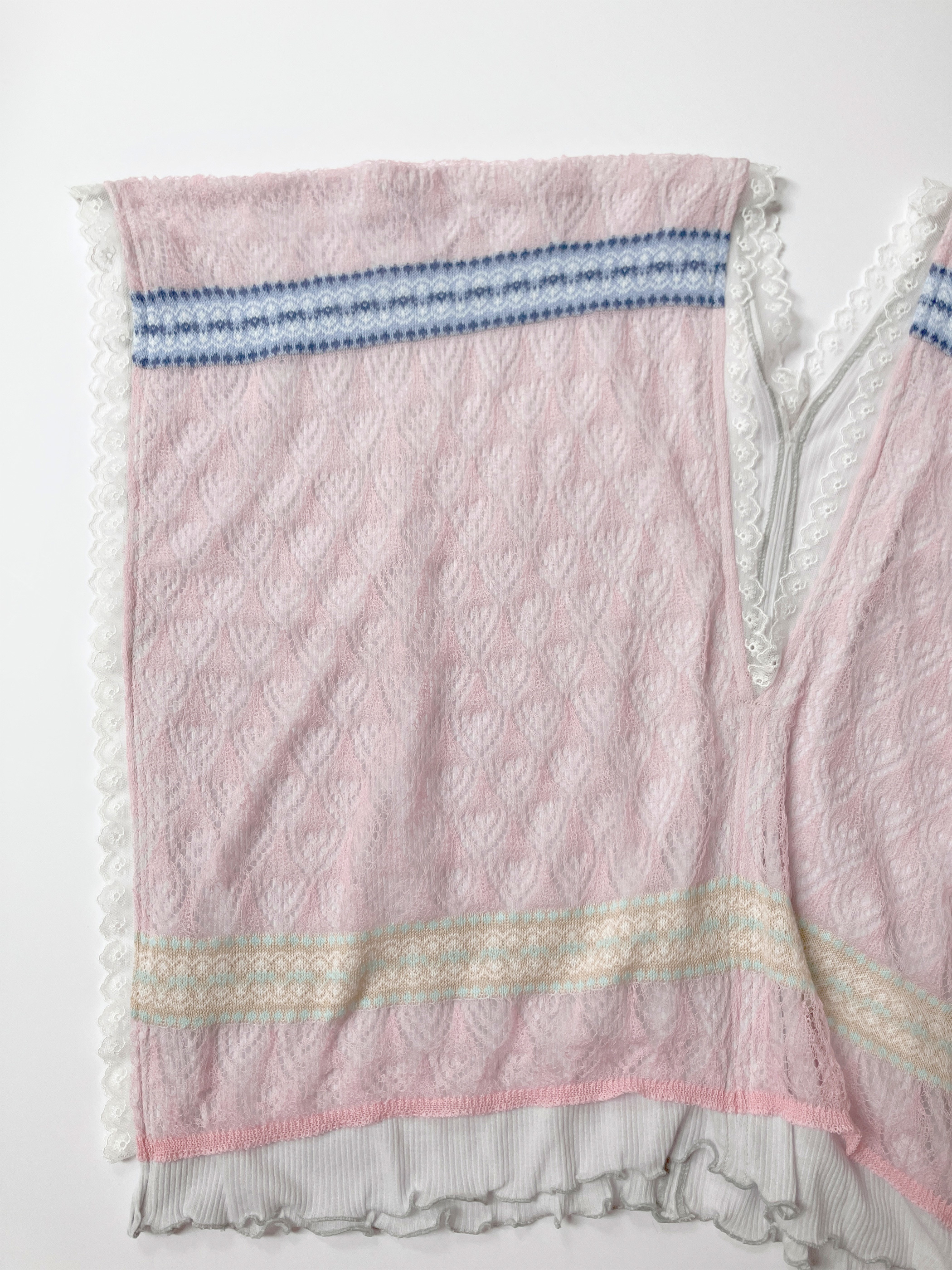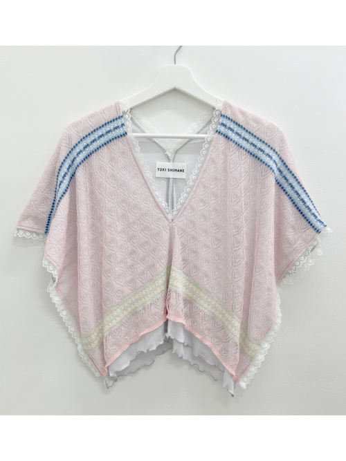 【先行予約】Vintage folk lace Sheer Rib top - PINK
