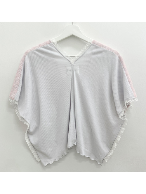 レースニットがドッキングされたシアーリブトップス。