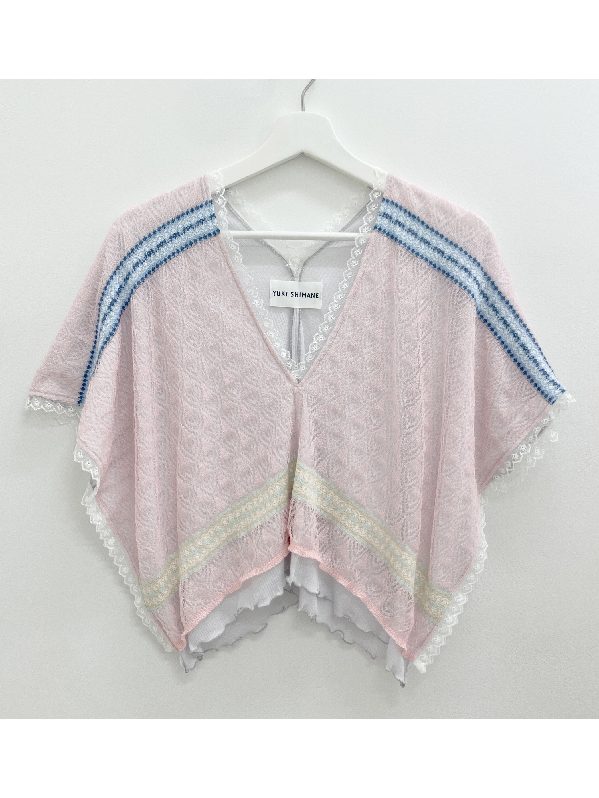 フォークロア調の編み替えがチロリアンテープのようなジャカードレースニット。