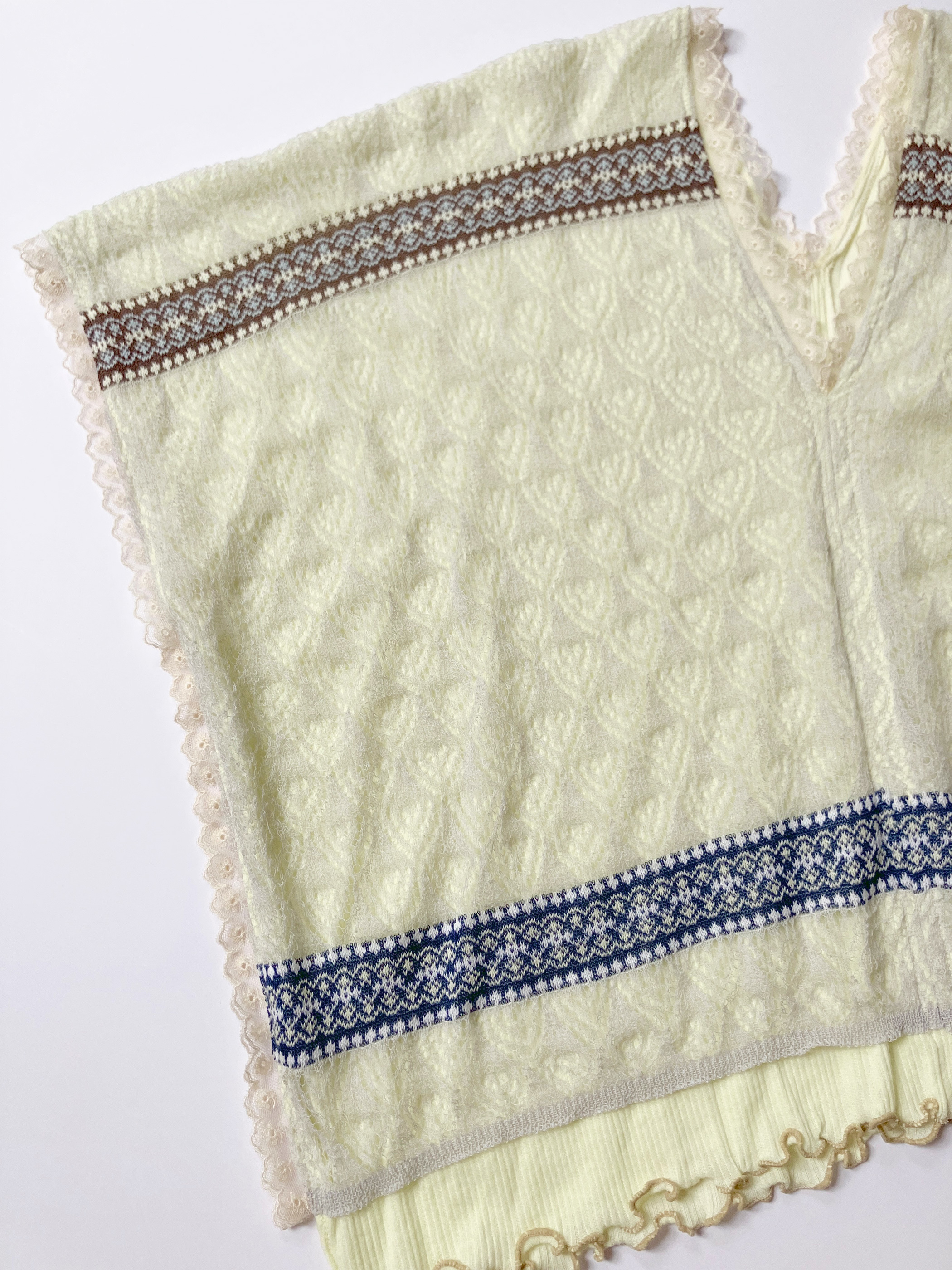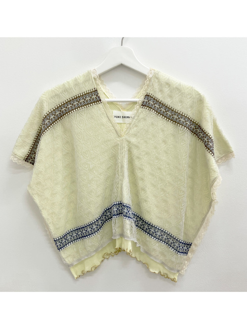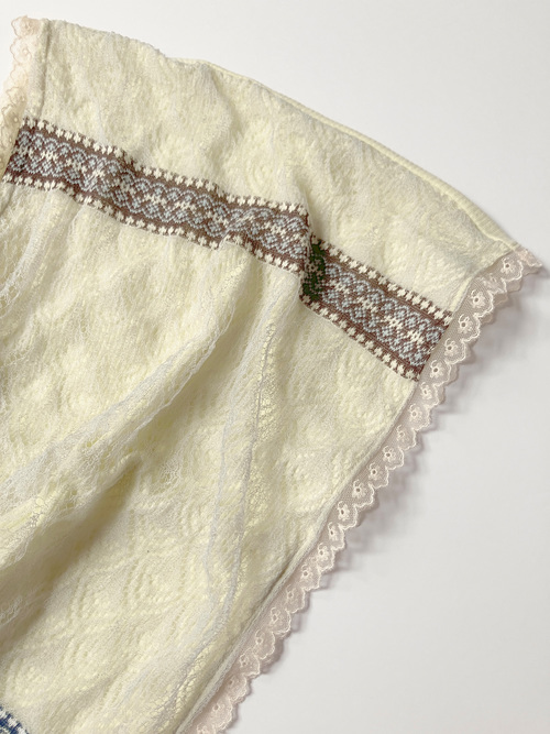 【先行予約】Vintage folk lace Sheer Rib top - YELLOW