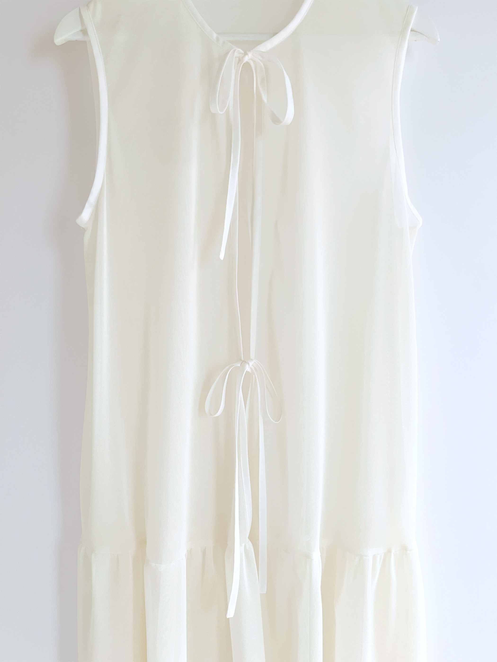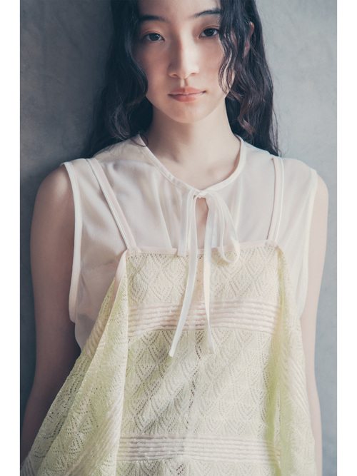 キャミドレスやパンツとのレイヤードのほか、袖ぐりが広めなのでシャツなどをインナーとして合わせた着こなしもおすすめです。