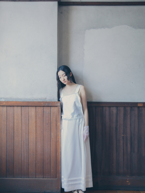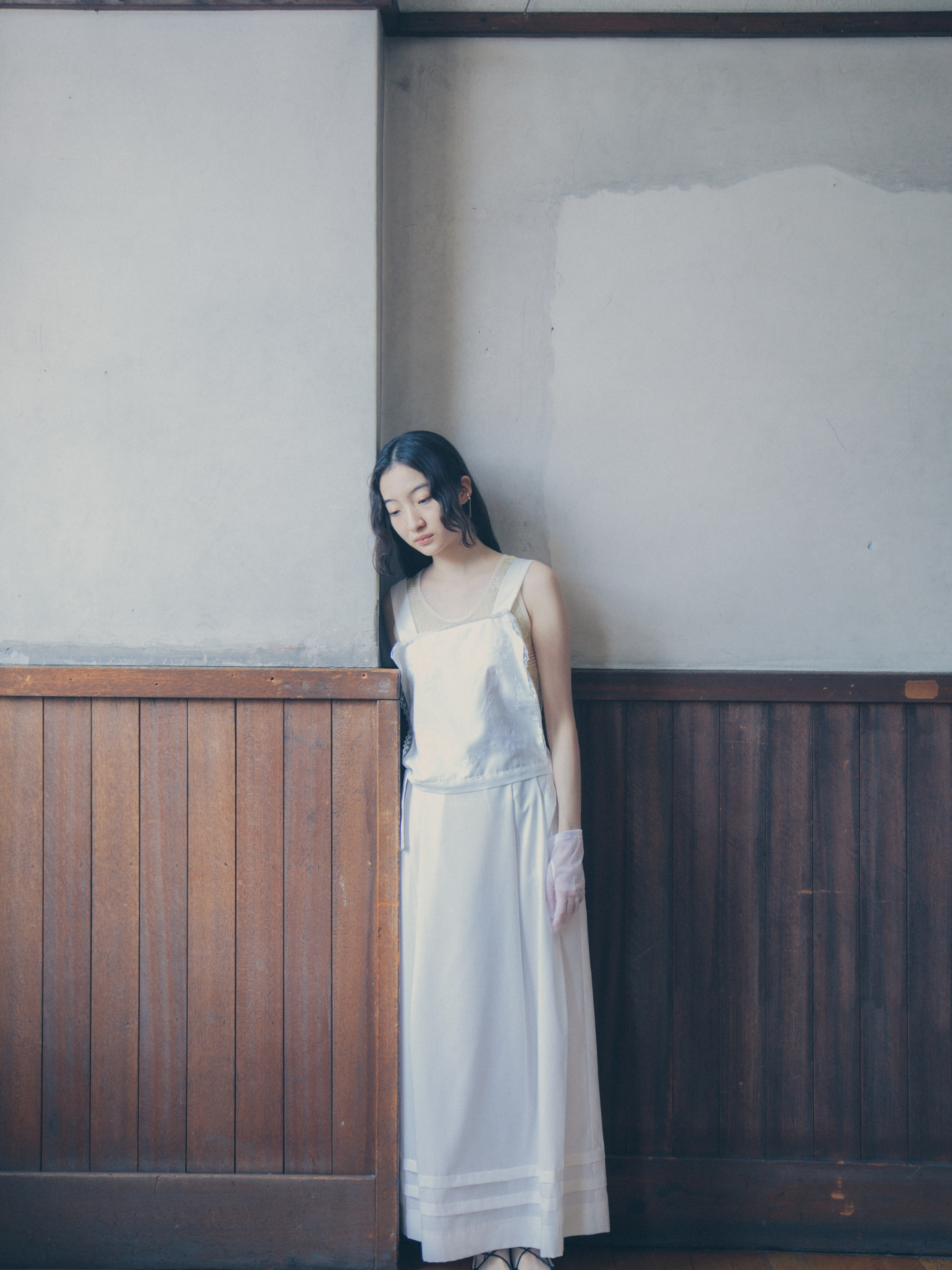 エプロンタイプのトップスはアクセサリーのような存在感。Swanlight Skirtとセットアップで着用いただけます。