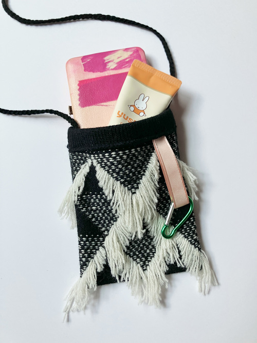 ポシェットのリボンにキーホルダーやカラビナを装着可能