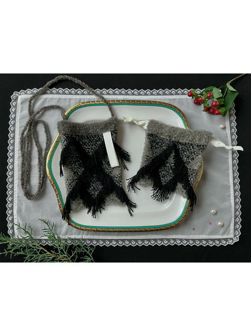 《LIMITED》Fringe Hand-knit - もこもこラメグレージュ×黒フリンジ