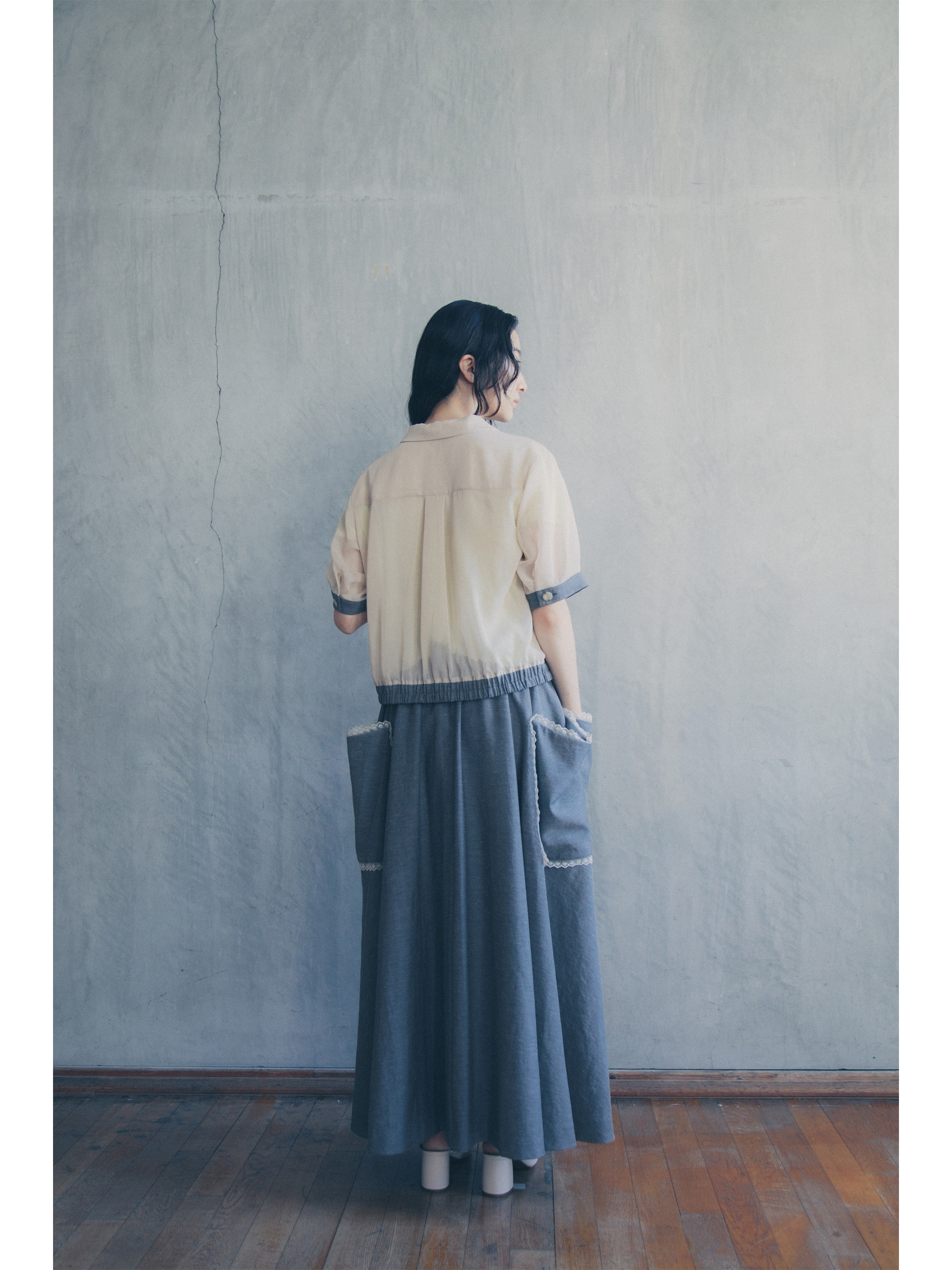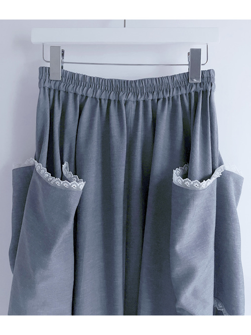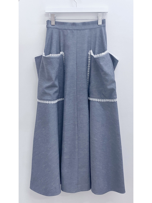 【先行予約】Denim-like Patch pocket Skirt - DENIM BLUE