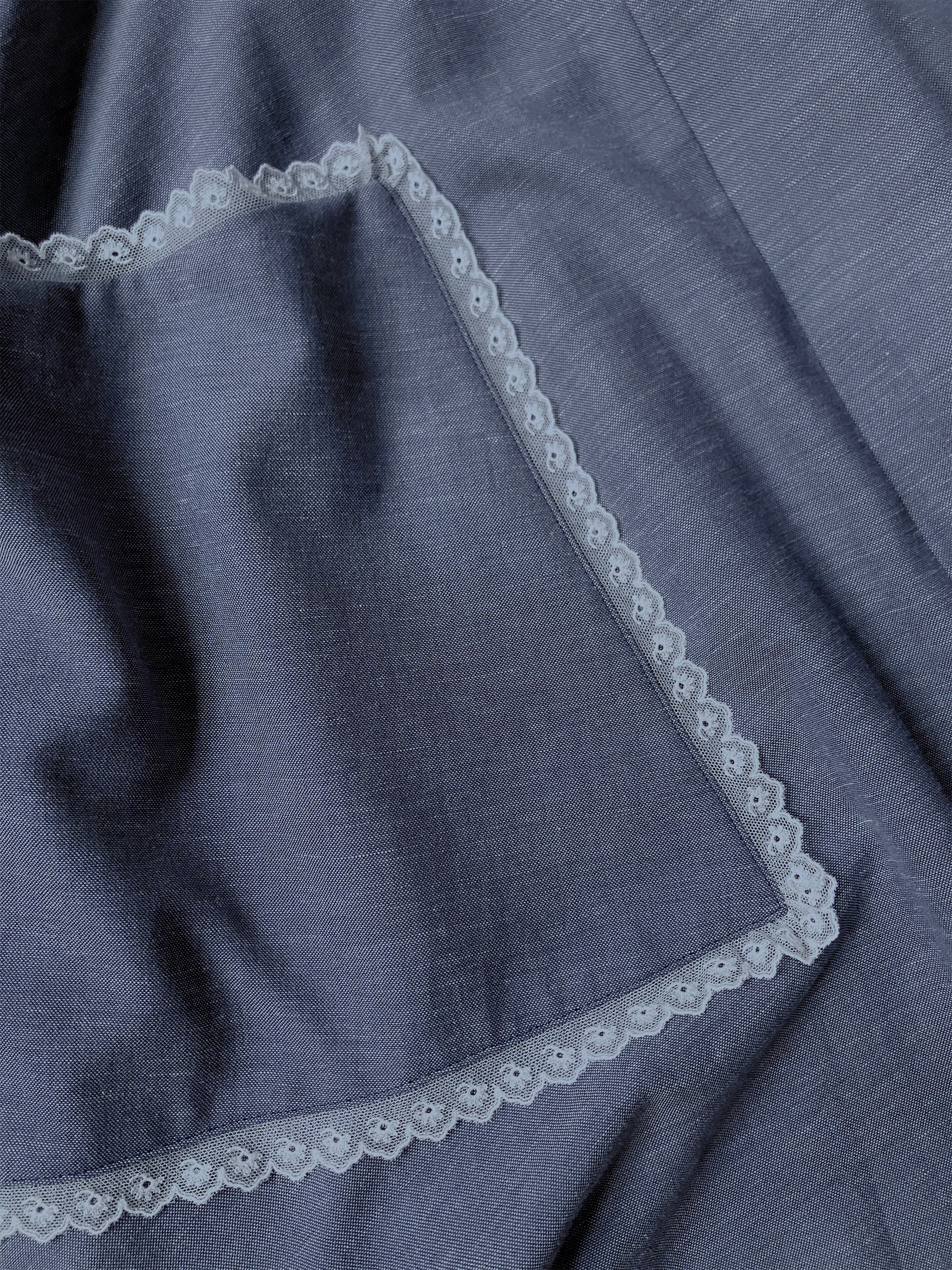緯糸に白の綿麻混紡糸を使用し織ることで、細かな杢調に仕上がりデニムのような表面感に。