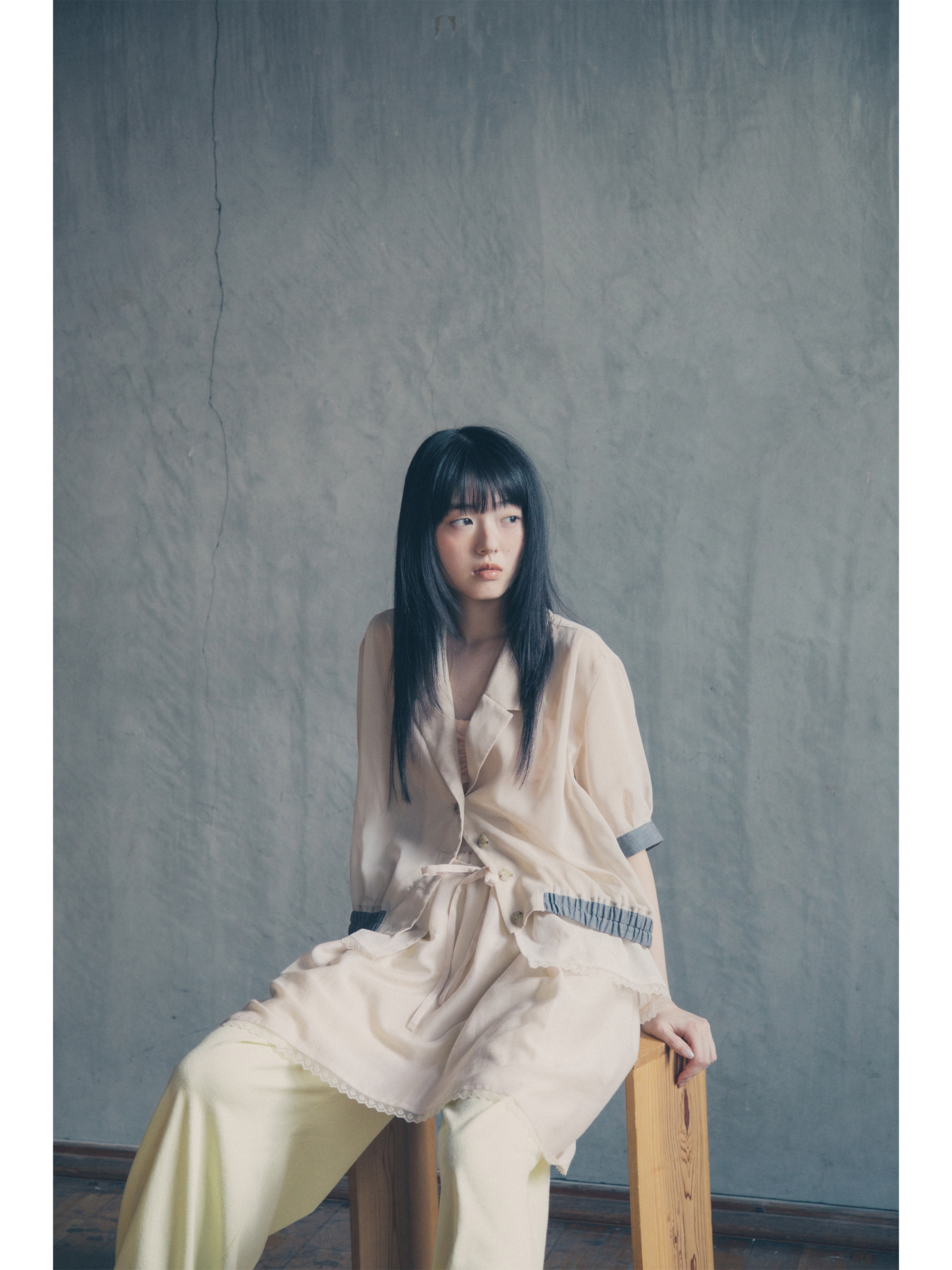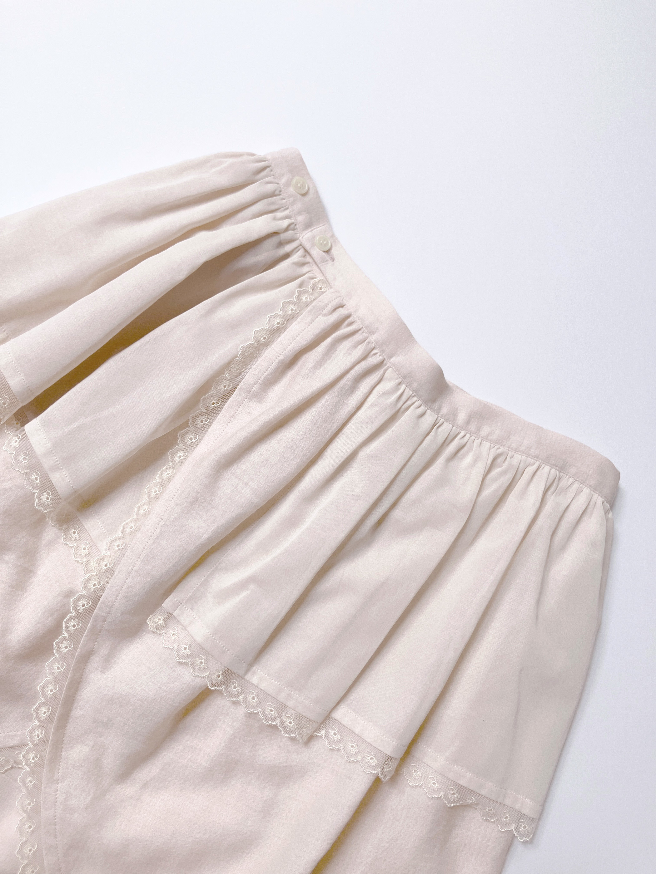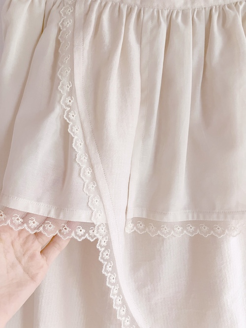 ベースにガーゼのようなソフトコットン、ペプラムには上品なボイルコットンを。