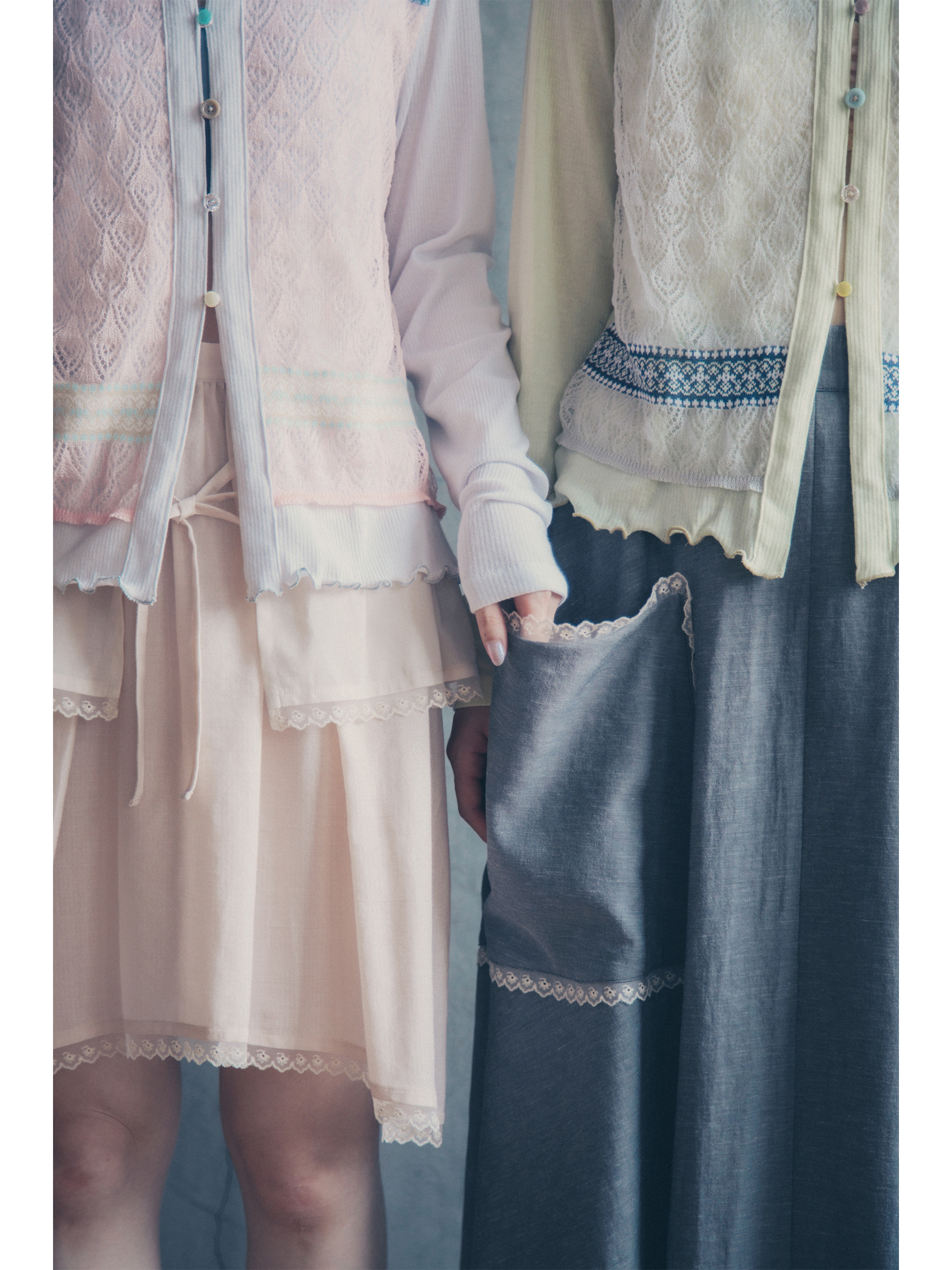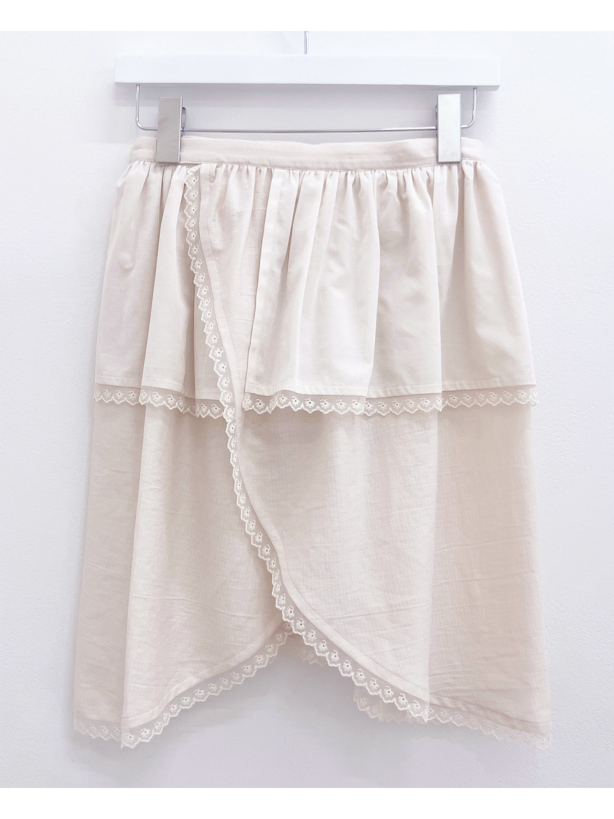 【先行予約】Lace-Trimmed Cotton Wrap Skirt - PINK BEIGE