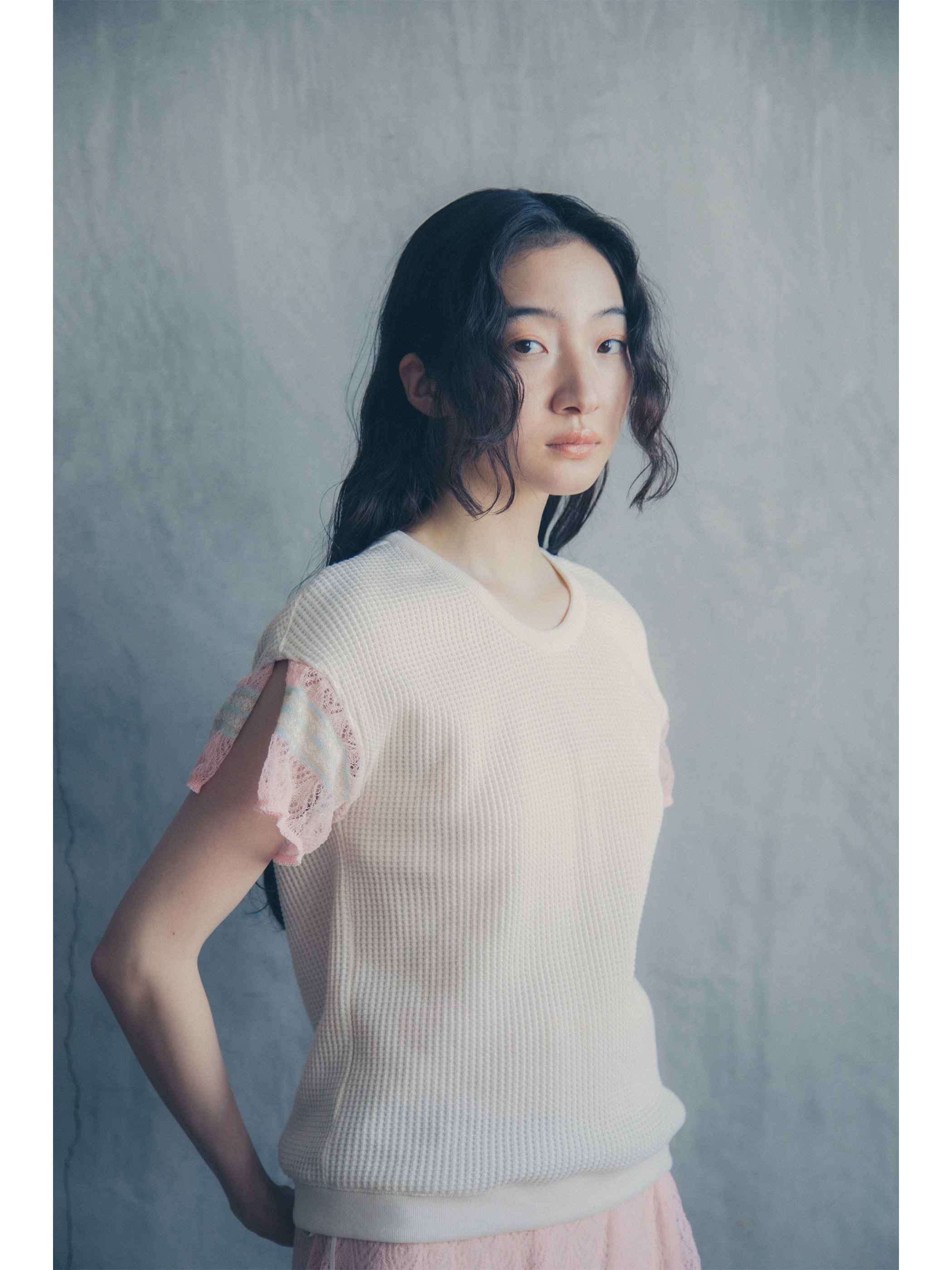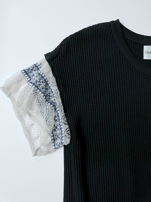 ふんわりとしたやわらかなワッフル素材を使用したカットソー。