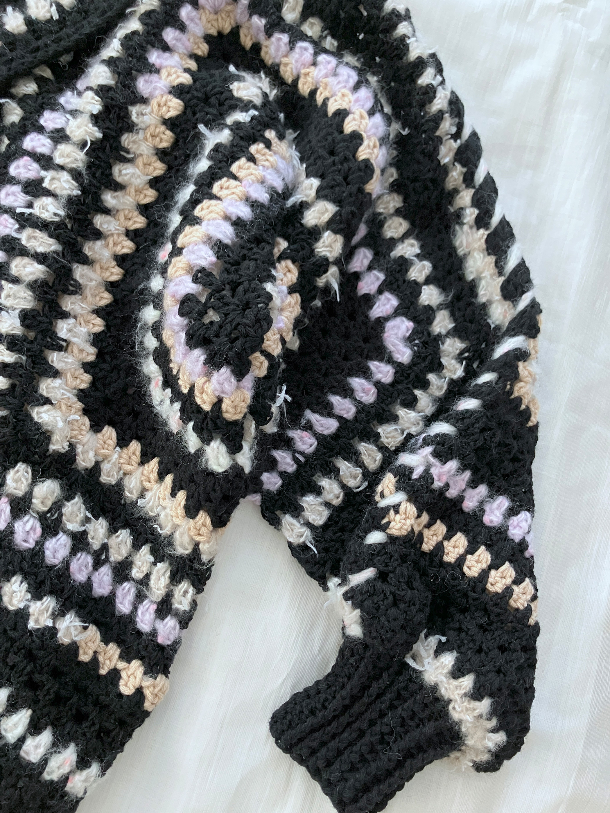 リブ部分、パーツのはぎ合わせまですべてかぎ針編みで仕上げられています。