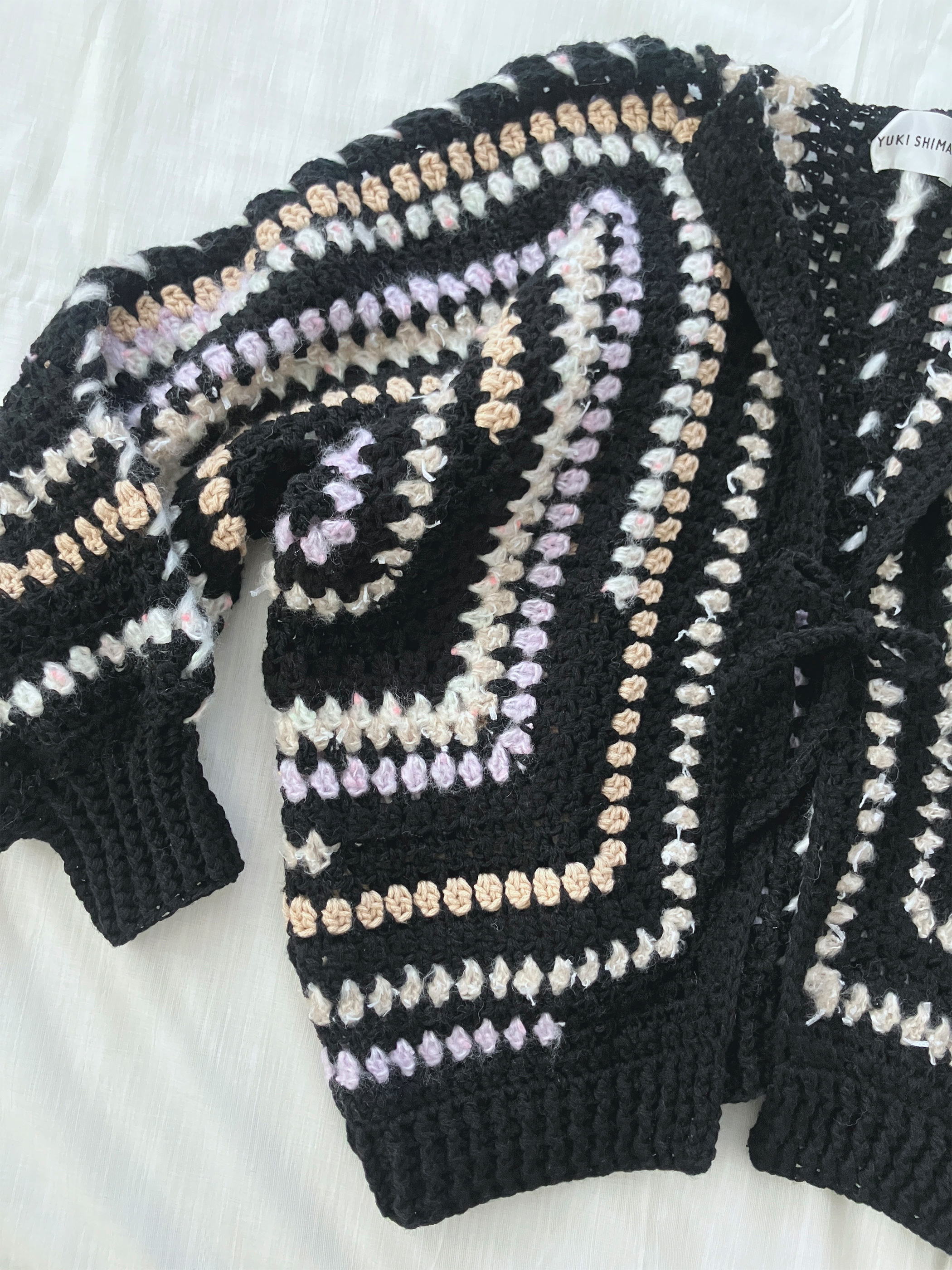 かぎ針編みのウェアは重くなりがちですが、空気を含んだ超軽量糸を使用することで軽やかな着心地を実現しました。